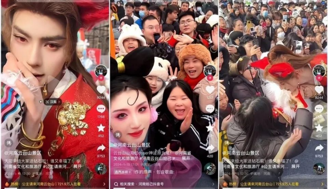 另一方面,做景区景点微短剧一定不能脱离线上线下的互动场景。比如近期走红的河南云台山景区的“男女妲己”,引发了网友的热烈讨论。据回应,他们实际上扮演的是山海经中的神话角色。如果云台山景区要做微短剧,不妨就借助已有的达人流量和山海经的场景,打造一个亦真亦幻的山海经故事,为这些神话角色的npc赋予血肉,延续观众的代入感和获得感,同时也能够较好地疏导网络争议。