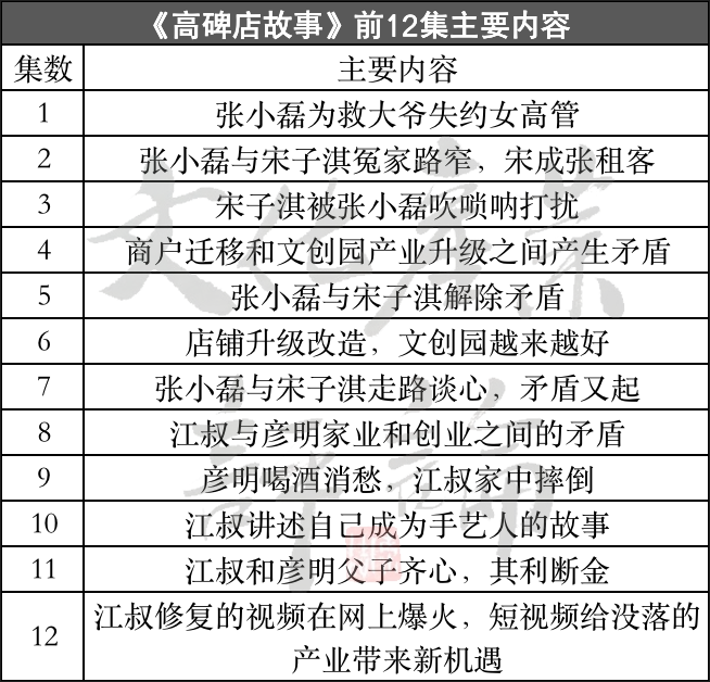 《高碑店故事》一共50集,每集在1—3分钟不等,可以算是极简的微短剧了。从上述表格可以看到,这部微短剧以张小磊与宋子淇这两个有反差的人物为线索,在3分钟内,设置了一个核心的矛盾或转折,且一集大多只包含两个场景,几集组合起来讲述一个小的故事,比如江叔和彦明之间父与子、旧与新的矛盾,通过男女主的视角见证高碑店村十年来实施文化兴村、产业升级战略,最终实现从“三无农村”到“最美乡村”的温情故事。